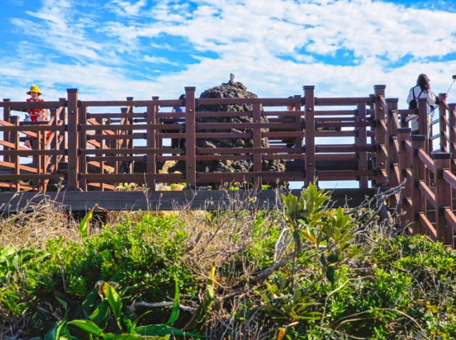 섭지코지의 산책로는 누구나 걷기 편한 완만한 코스로 구성되어 있습니다. 약 1시간 정도 여유롭게 걸으며 바다를 따라 이어지는 길은 마음을 차분히 가라앉히는 힘이 있습니다. 특히 섭지코지의 끝자락에서는 성산일출봉이 장엄하게 펼쳐지며, 제주의 상징 같은 풍경을 감상할 수 있습니다.
