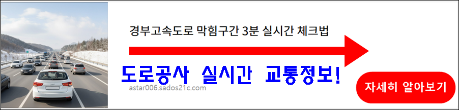 경부고속도로 막혀서 약속 시간 놓친 경험 있으시죠? 실시간 교통정보만 제대로 확인해도 30분 이상 시간을 아낄 수 있습니다. 3분만 투자하면 막힘 구간을 미리 파악하고 우회로까지 안내받는 방법, 지금 바로 알려드립니다.