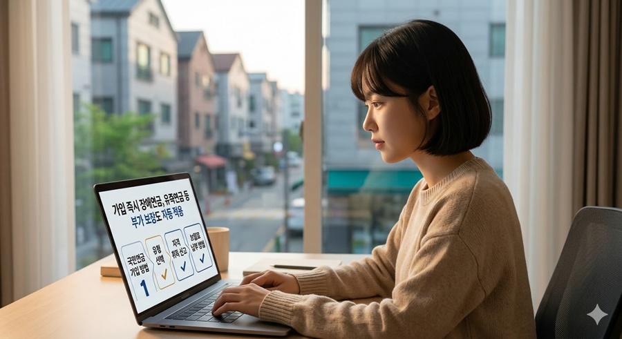 - 가입 즉시 장애연금, 유족연금 등 부가 보장도 자동 적용되어 위험 대비 가능