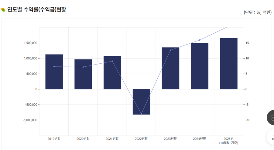 요약: 국민연금은 최근 10년 평균 5.4%로 적금 2.5%의 2배 이상 높은 수익률을 기록했습니다.