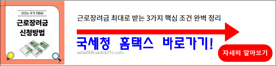 근로·자녀 장려금 신청만 해도 최대 300만원을 받을 수 있는데, 본인이 얼마나 받을 수 있는지 모르는 분들이 대부분입니다. 국세청 홈택스에서 3분이면 예상금액을 조회할 수 있고, 신청 자격만 확인하면 누구나 받을 수 있는 혜택입니다. 지금 바로 확인하고 놓치지 마세요!