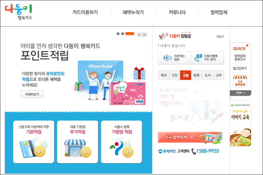 Q1. 다둥이 행복카드를 신청하면 매달 현금이 통장으로 입금되나요? A1. 아니요, 이 카드는 현금 지급 대신 공공시설 이용료 감면 및 가맹점 할인/포인트 적립 혜택을 제공합니다.