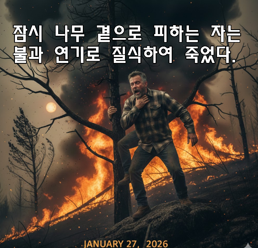 인생이라는 거대한 숲에서 우리는 예기치 못한 심판의 불길을 마주하곤 합니다. 캐나다의 울창한 수풀 속에서 사냥하던 두 포수가 마주한 산불처럼, 죄의 결과로 다가오는 하나님의 공의로운 진노는 인간의 힘과 속도로는 도저히 피할 수 없는 절망적인 상황입니다.