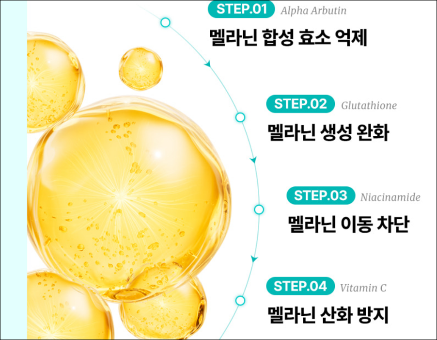 요약: 랩핑 시스템을 통해 미백 유효 성분을 피부 깊숙이 전달하여 확실한 기미 개선 효과를 제공합니다.