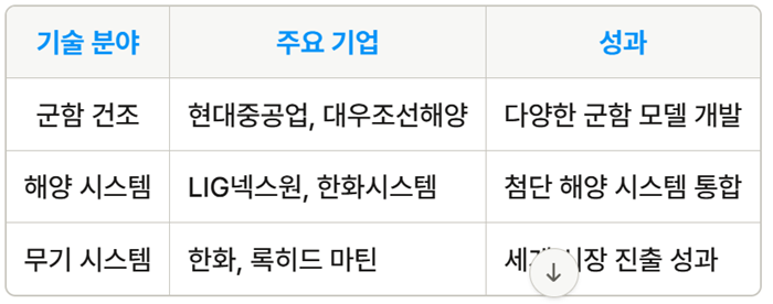 한국은 세계적으로 인정받는 방산 기술력을 보유하고 있습니다. 특히 해양 방산 분야에서의 성장은 주목할 만합니다. 한국 방산 기업들은 다양한 군함과 해양 시스템을 개발하는 데 성공적이었습니다.