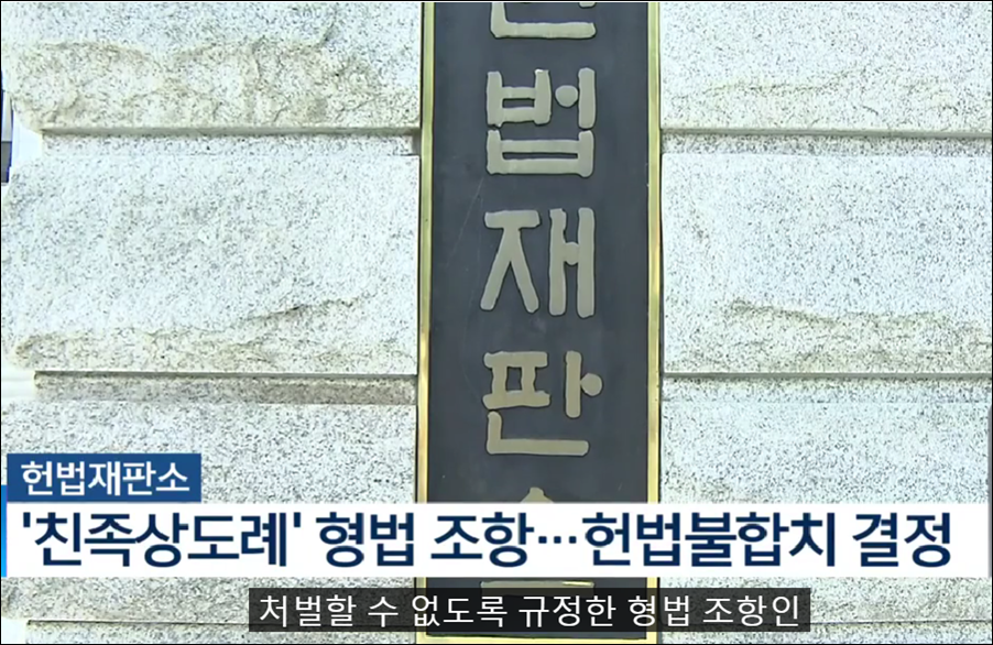 [요약] 범죄의 은폐 수단으로 악용되던 친족상도례 규정이 헌법재판소의 위헌 결정과 국회 통과를 통해 70년 만에 사라졌습니다.