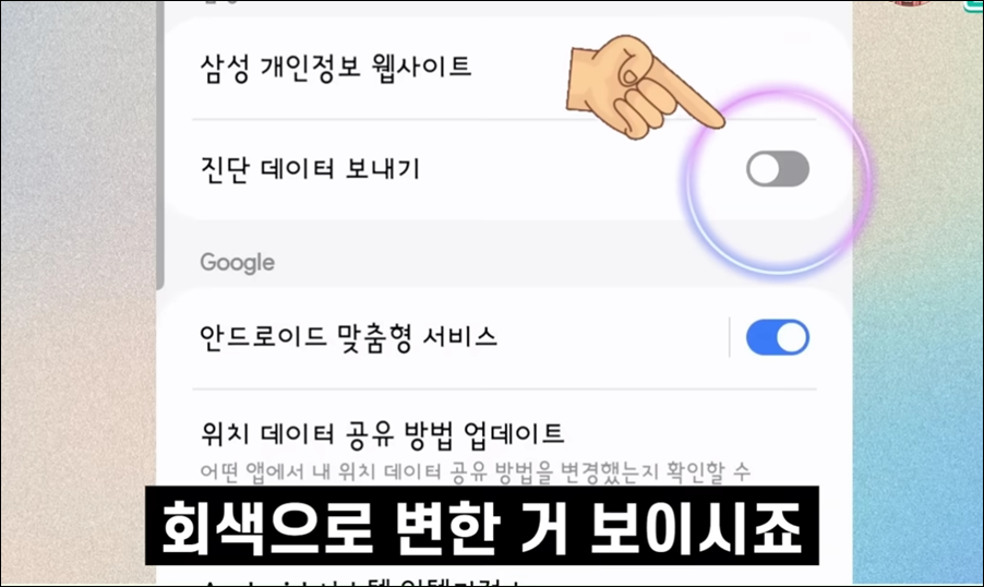 요약: 스마트폰 사용 습관이 외부로 전송되는 것을 막기 위해 진단 데이터 보내기 기능을 비활성화하세요.