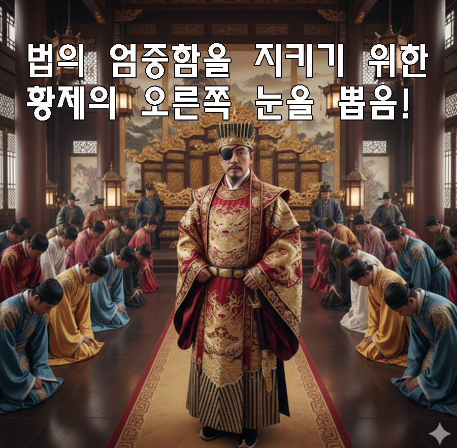 황제는 깊은 고민에 빠졌습니다. 법대로 아들의 눈을 뽑자니 아비로서 가슴이 찢어지고, 나라를 이어받을 후계자가 장애를 갖게 되는 현실이 막막했습니다. 그렇다고 아들이라는 이유로 용서해 주자니 황제의 권위와 법의 위엄이 땅에 떨어질 판이었습니다. "의를 세워야 하는 통치자"와 "자식을 사랑하는 아버지", 이 두 마음이 격렬하게 충돌하는 지점은 우리 인류를 바라보시는 하나님의 마음과도 닮아 있습니다.