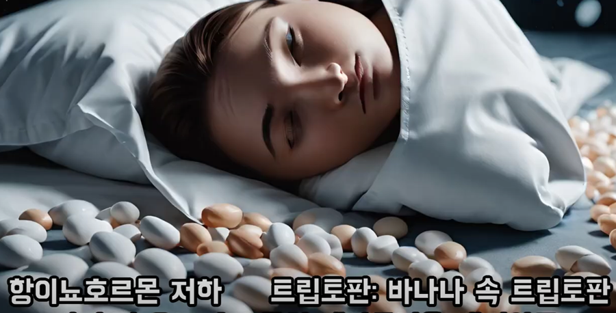 | 1. 항이뇨호르몬(바소프레신) 저하 | 트립토판 | 트립토판이 수면 호르몬인 멜라토닌으로 전환되고, 이는 바소프레신 분비를 촉진해 밤 소변 생성을 억제합니다. |
