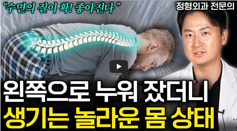 Q1. 왼쪽으로 누워 자는 자세가 허리 통증에 안 좋지는 않을까요? A1. 무릎 사이에 쿠션을 끼워 골반 뒤틀림을 막고 척추 정렬을 유지하면 허리에 부담을 줄일 수 있습니다.