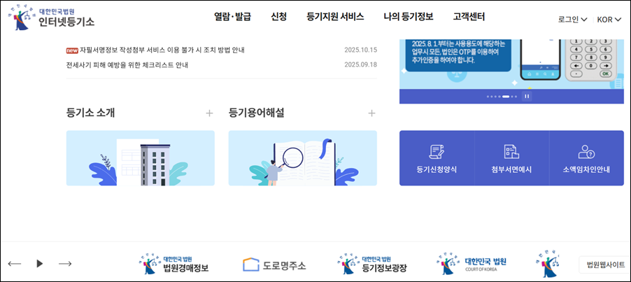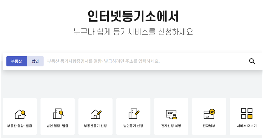 인터넷등기소(www.iros.go.kr) 접속 후 공인인증서나 카카오톡, 네이버 아이디로 간편 회원가입하면 됩니다.