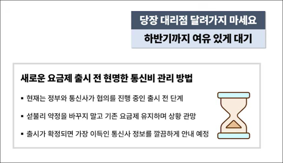 많은 분들이 놓치고 있는 사실은 이 요금제가 단순한 저가 요금이 아니라, 속도 제한(QoS) 방식을 도입해 추가 요금 걱정을 완전히 없앴다는 점입니다. 현재는 정부와 통신사가 세부 조건을 협의 중인 단계이므로, 당장 약정을 새로 걸기보다는 올해 하반기 출시 소식을 기다리는 것이 가장 현명합니다.
