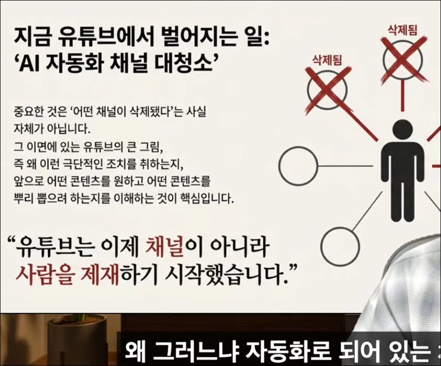 최근 유튜브가 AI로 생성된 자동화 채널들을 대대적으로 삭제하며 크리에이터들 사이에서 긴장감이 고조되고 있습니다. 단순한 기술적 오류가 아니라 구글과 유튜브가 추구하는 플랫폼의 미래 가치를 지키기 위한 단호한 조치임을 이해해야 합니다.