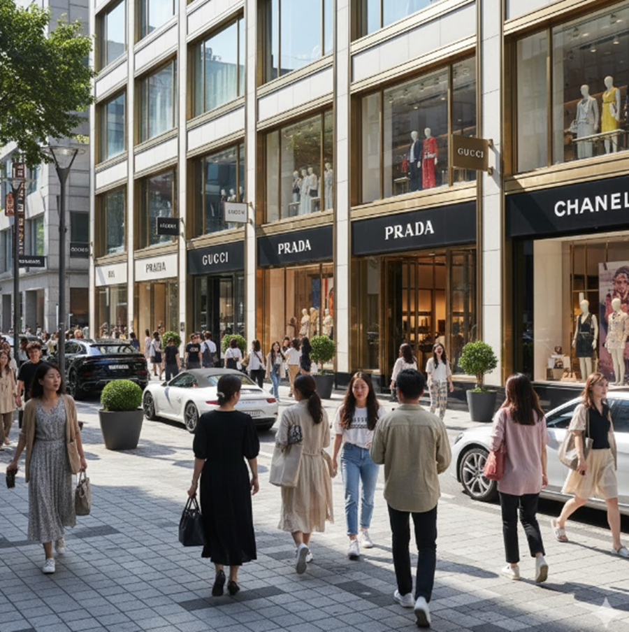 5) 강남: 압구정 로데오거리 명품 매장들 앞 (주말 오후 2시-4시 사람 적음)