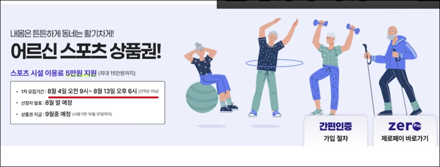 - 노인체육바우처, 65세 이상 기초연금 수급자에게 최대 15만원의 스포츠 상품권 지급