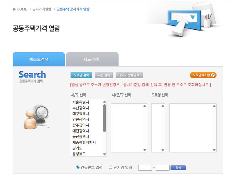 요약: 부동산공시가격 알리미에서 주소 입력 후 즉시 조회 가능