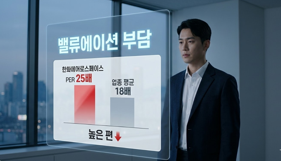 - 밸류에이션 부담 - 한화에어로스페이스 PER 25배로 업종 평균 18배 대비 높은 편