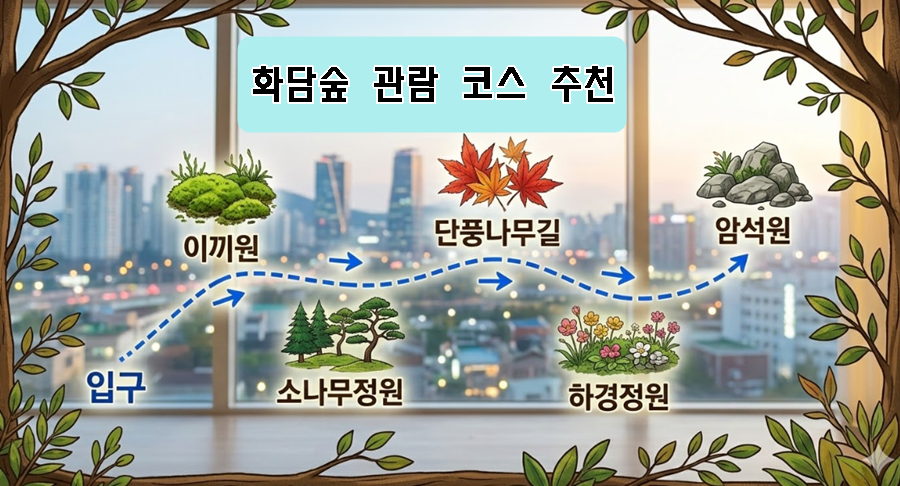 Q4. 전체 관람에 소요되는 시간은 어느 정도이며, 계절별로 놓치지 말아야 할 화담숲의 대표적인 볼거리는 무엇인가요? A4. 약 2시간 30분이 소요되며 봄에는 자생화단지의 야생화, 가을에는 단풍나무길의 단풍, 여름에는 수국길이 관람의 핵심 포인트입니다.