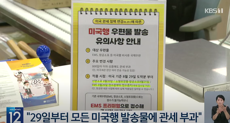 이번 서비스 중단은 우체국의 일방적인 조치가 아닙니다. 미국의 새로운 관세 정책 때문인데요. 미국은 9월 29일부터 서류와 서신을 제외한 모든 국제 우편물에 대해 관세를 부과하는 새로운 제도를 시행합니다.